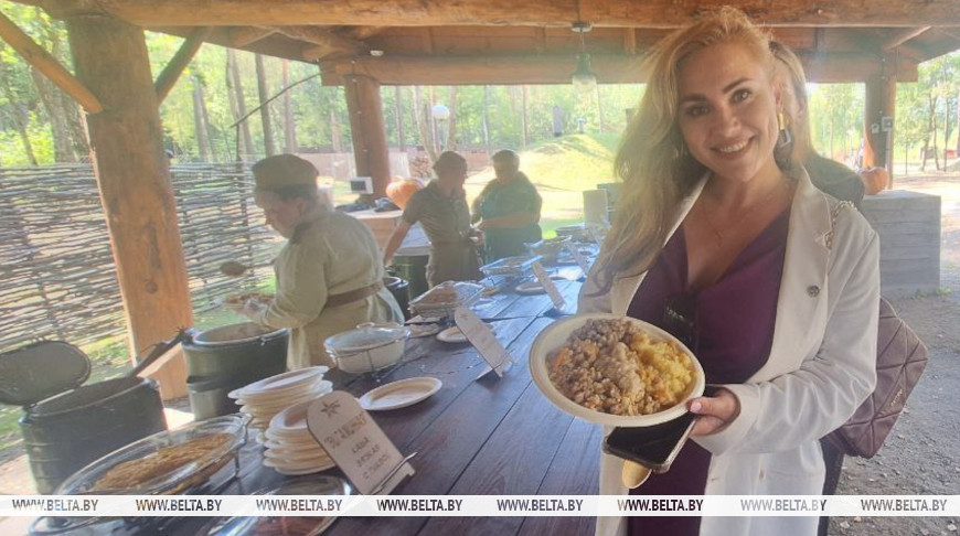 Повара-солдатки угощали щедрыми порциями, предлагая отведать ассорти из семи видов каш. Так, можно было пополнить "Стратегический запас" одноименной кашей с мясом, рисом и капустой. В фестивальном меню также была "Витаминная" с тыквой, "Богатырская" геркулесовая, "Лесная" перловая с грибами, "Солдатский" пшенный кулеш с овощами. Приглашали отведать также "Осеннего узвара", получить "Ягодный заряд" со смородиной и мелиссой, "Защиту воина" с чабрецом, напиток на основе иван-чая "На страже" с корицей и ромашкой. Манили гостей фестиваля ароматы свежей выпечки: солдатского хлеба, пирогов с различными начинками, включая творог, яблоки, капусту, варенье.Председатель первичной профсоюзной организации студентов Белорусского государственного университета транспорта Анна Красник приехала на "Партизанскую криничку" вместе со студентами и ребятами из профильного колледжа. "Сама я уже во второй раз на Фестивале солдатской каши. Это особенное мероприятие, которое всегда дарит много впечатлений. Видим, какой интерес вызывает полевая кухня. Здесь интересные локации и интерактив, поэтому все с удовольствием участвуют. Некоторые в этом памятном месте впервые, так как поступили и приехали учиться в Гомель из других районов", - поделилась она.