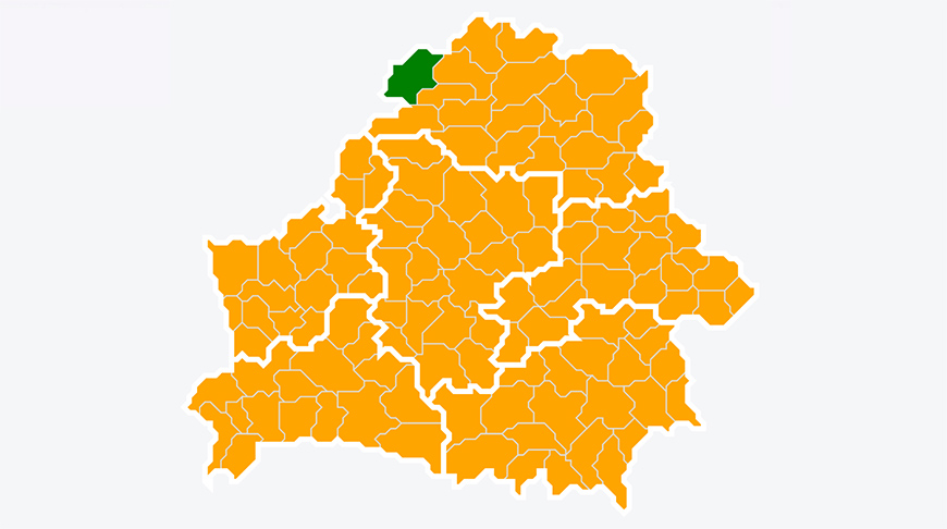 Районы, в которых ограничено посещение лесных массивов, обозначены на карте желтым цветом. По данным на 11 мая во всей республике, за исключением Браславского района Витебской области, действует режим ограничения.