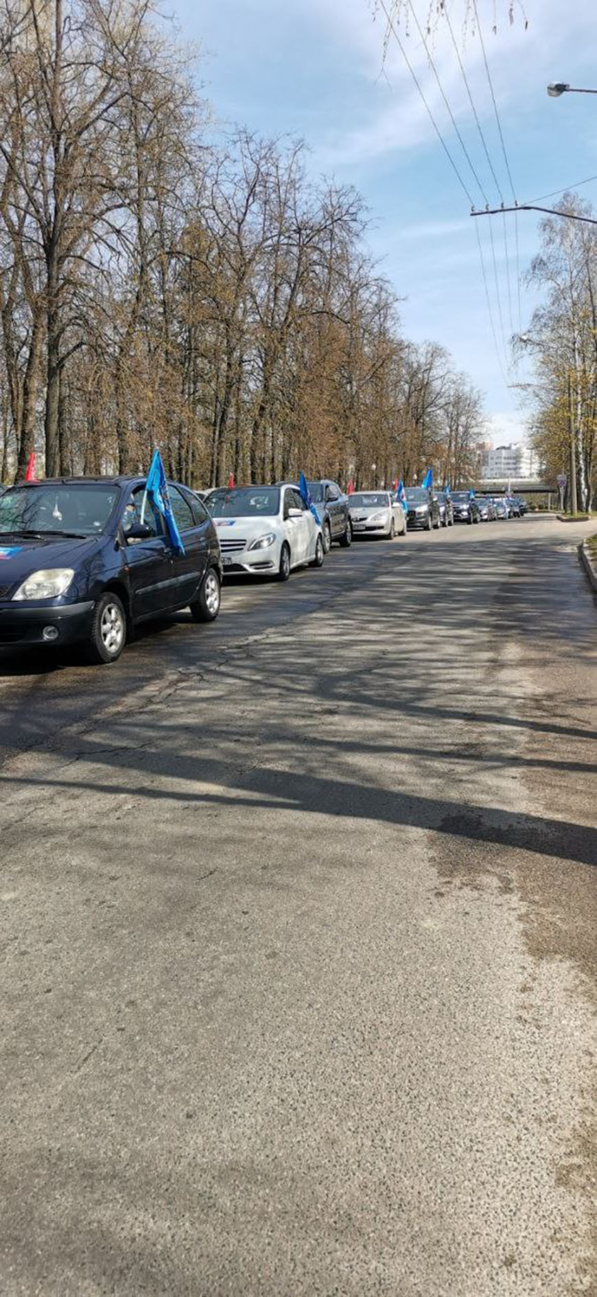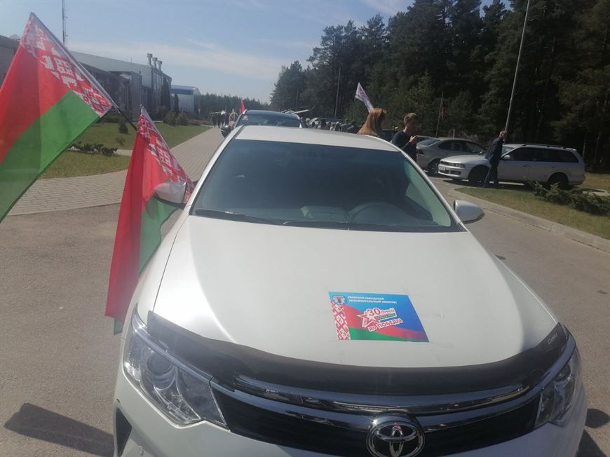 Старт автопробега в Первомайском районе был дан от Национальной библиотеки Беларуси. Участники отдали дань памяти погибшим на братской могиле на 9-м км Московского шоссе.