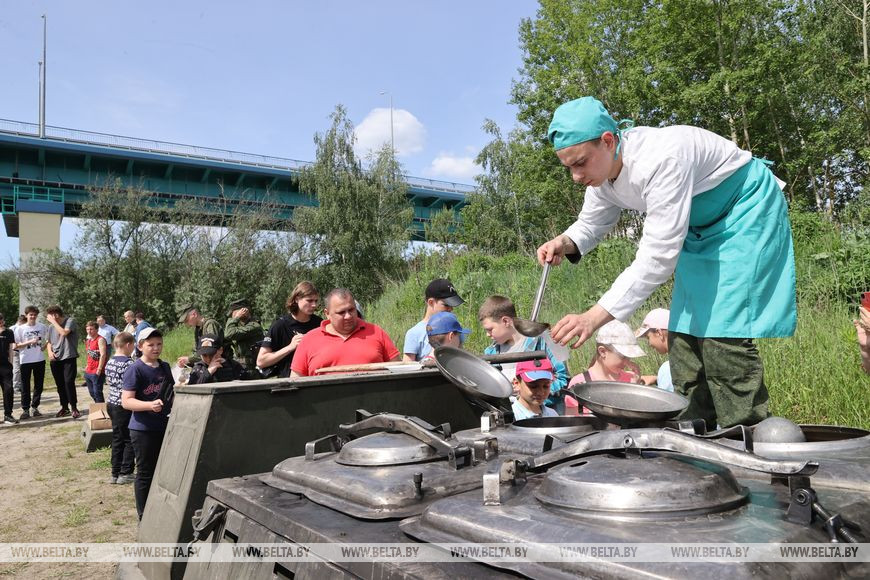 За отработкой эпизода наблюдали и юные жители Гомельского района. Эмоции, впечатления ребята получили самые яркие. Отведали мальчики и девочки и солдатской каши. -0-