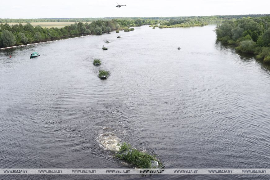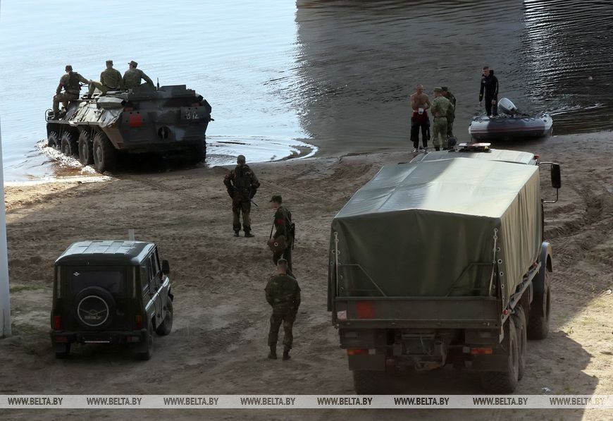 7 июня, Гомельский район /Корр. БЕЛТА/. Усиленный парашютно-десантный батальон 103-й Витебской отдельной гвардейской воздушно-десантной бригады сил специальных операций совместно с пограничной службой отработали эпизод переправы по преодолению водной преграды через реку Сож в условиях воздействия "диверсионных сил" условного противника, передает корреспондент БЕЛТА.