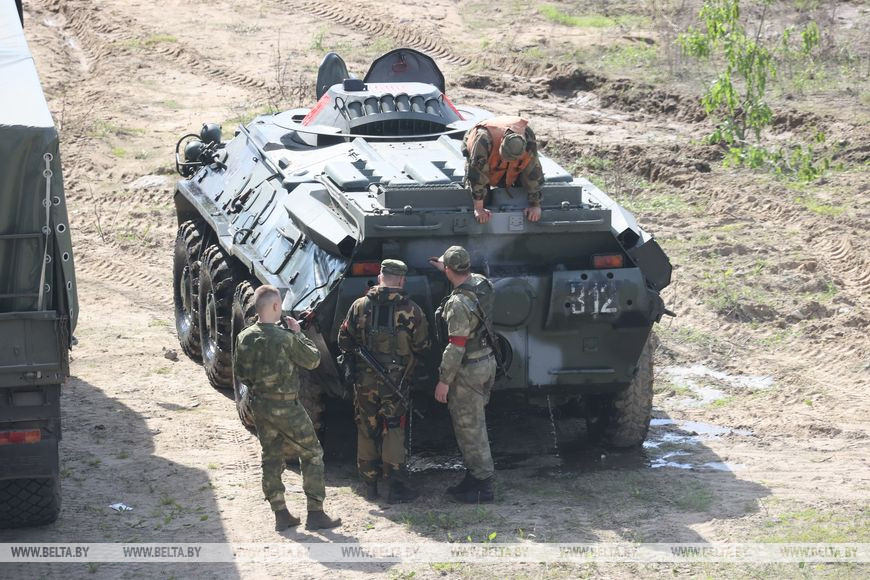 Первыми на берег десантировались разведчики, чтобы взять под контроль участок высадки. Минометные подразделения батальона заняли огневые позиции для поддержки форсирующих реку. По команде командира батальона БТР вошли в воду с дистанцией 20-30 м между машинами. Как уточнил руководитель занятия, такая дистанция позволяет быстро и плотно перемещаться подразделениям по воде. С помощью водометных движителей БТР на воде развивают скорость до 10 км/ч. По реке подразделения сопровождал катер пограничной службы с разведвзводом, который обеспечивал охрану входа и выхода техники на двух берегах. С воздуха осуществлялась поддержка вертолетом Ми-8 МТВ-5.
