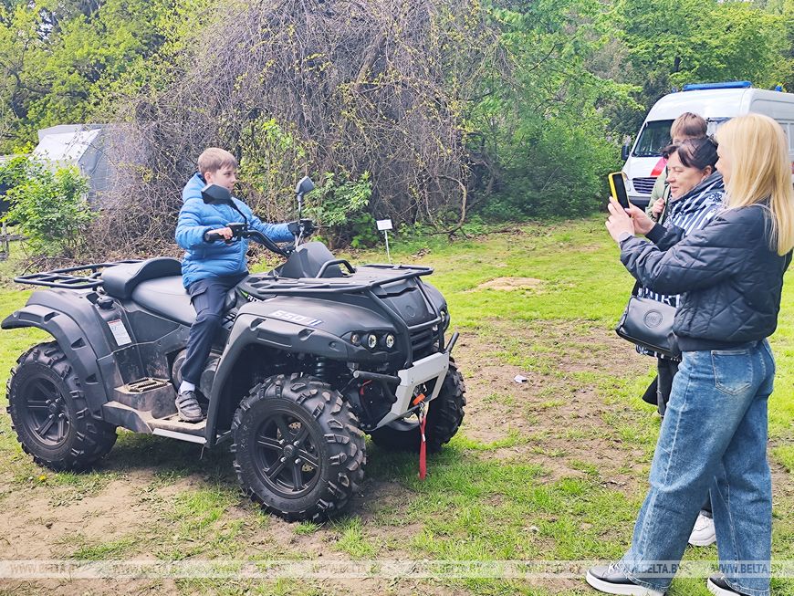 "Этот легкобронированный автомобиль "Лис" создан на базе нашего МЗКТ и предназначен для доставки личного состава и ведения боевых действий. Следующий - вооружен крупнокалиберным пулеметом. Третий экземпляр - квадроцикл, необходим для маневренных перемещений, - знакомит с техникой спецназовец. - Интерес вооружение вызывает всегда, как у детей, так и у взрослых. Для меня, как и для каждого сотрудника нашего ведомства, День Победы - один из важнейших праздников. В свое время наши деды отстояли независимость нашей страны, чтобы мы, как сегодня, могли прийти со своими семьями в парк и отдохнуть, а над нами было мирное небо".