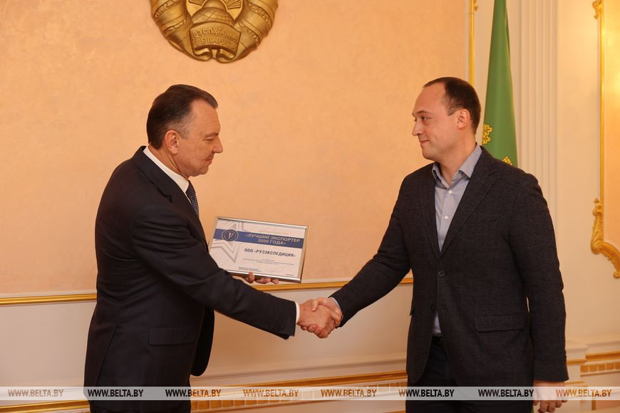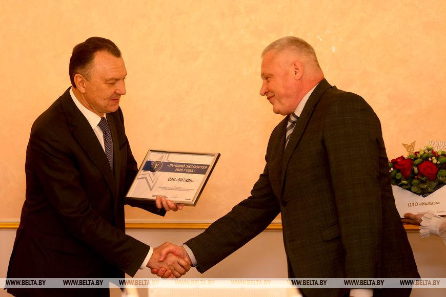 18 ноября, Витебск /Корр. БЕЛТА/. Восемь предприятий Витебской области стали победителями и дипломантами республиканского конкурса "Лучший экспортер" по итогам 2020 года. Торжественная церемония награждения лауреатов прошла сегодня в Витебском облисполкоме, передает корреспондент БЕЛТА.