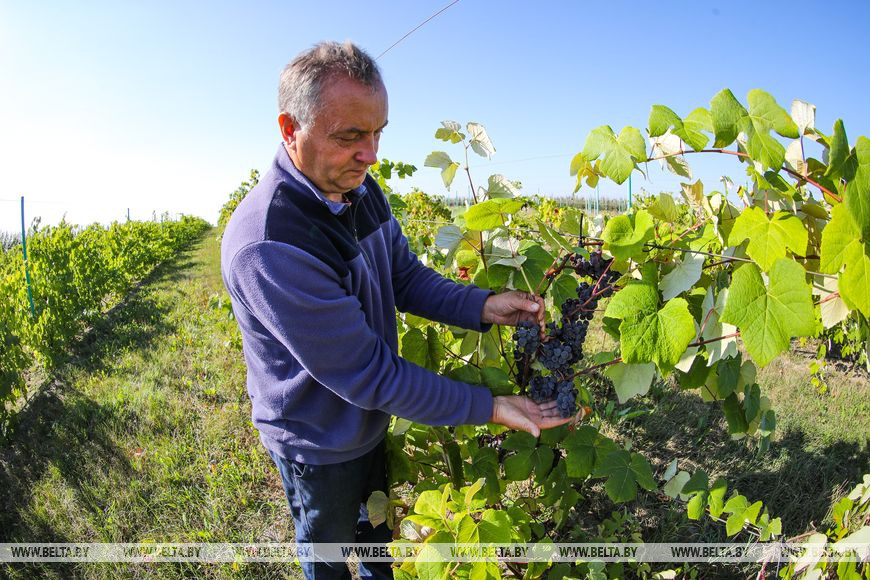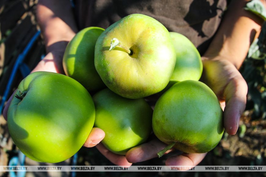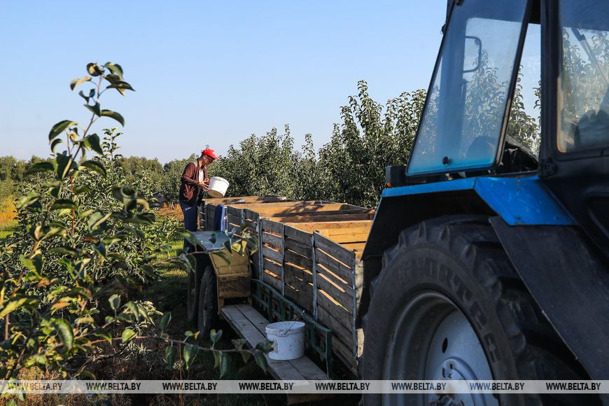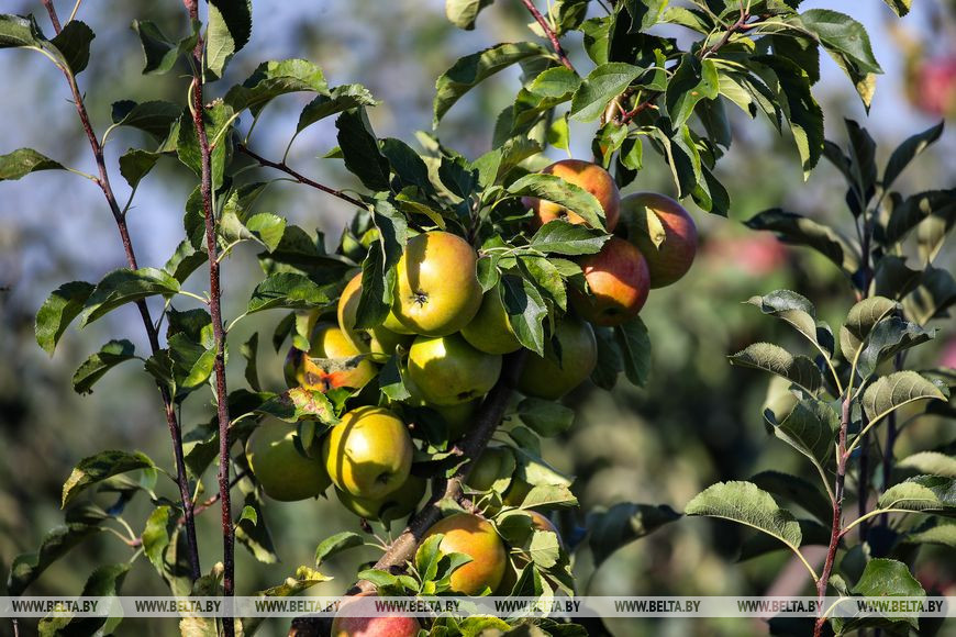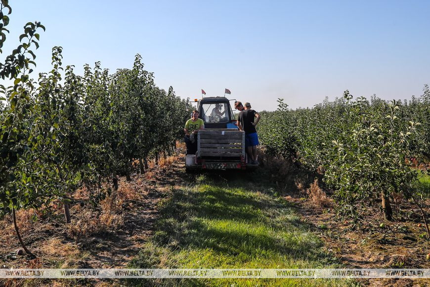 Весь сад занимает больше 200 га. Помимо яблок в хозяйстве выращивают черешню, вишню, сливу, абрикосы, алычу, виноград белорусской селекции. "На подходе виноград, будем его убирать в сентябре. Выращиваем с 2019 года. У нас свое производство, делаем яблочно-виноградный сок. В этом году заложили плантацию столового винограда. На следующий год планируем получить первый урожай", - добавил управляющий садом.-0-