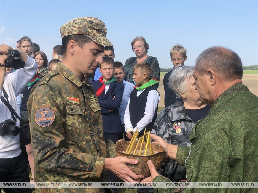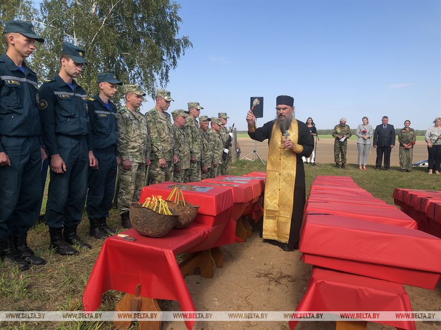 В Могилевской области каждый район пропитан героизмом бойцов Красной армии, имена которых увековечили 1760 обелисков, памятников, братских могил. Несмотря на то, что с момента окончания Великой Отечественной войны выросло не одно поколение, события тех далеких лет не тускнеют в памяти людей. Более того, с каждым поднятым из земли солдатом они с новой силой откликаются в наших сердцах. Поисковые работы продолжаются уже несколько десятилетий - до сих пор устанавливаются ранее неизвестные места захоронений, возвращаются из небытия имена защитников Отечества и жертв военного лихолетья. Очередное перезахоронение погибших прошло на гражданском кладбище деревни Большое Черное Шкловского района. Здесь с почестями проводили в последний путь красноармейцев, погибших на этой земле 10 июля 1941 года. В торжественной церемонии приняли участие поисковики из Беларуси и России, родственники павших героев, представители исполнительной власти и общественности. Вместе с ними дань уважения защитникам отдала корреспондент БЕЛТА.