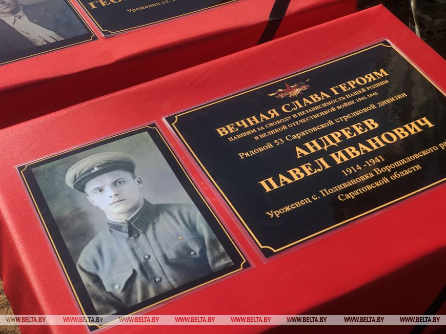 Все 16 бойцов, имена которых удалось установить, - уроженцы Саратовской области. У одиннадцати из них нашлись родные, в том числе один приехал, чтобы лично забрать героически погибшего родственника. "Я внук Павла Ивановича Андреева 1914 года рождения, который ушел в мае 1941 года на белорусскую землю, а в сентябре 1941 года его жена, моя бабушка, получила похоронку, в которой говорилось, что он пропал без вести, - вспоминает житель Саратова Василий Скитев. - Бабушка ждала его всю жизнь и надеялась, что он вернется. Не дождалась. Она пыталась найти его в Гомельской области, но поиски остались безуспешными. Потом деда искала моя мать, она даже не поменяла девичью фамилию. Тоже не дождалась. Мне повезло - я нашел своего деда и увезу домой. Он упокоится на родной земле, я буду приходить к нему на могилу. Я рад, что он обрел свое имя и то, что он погиб достойно, как положено настоящему бойцу".