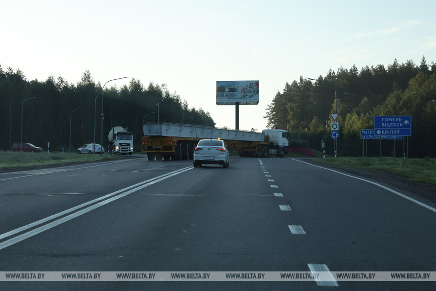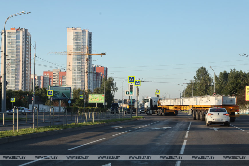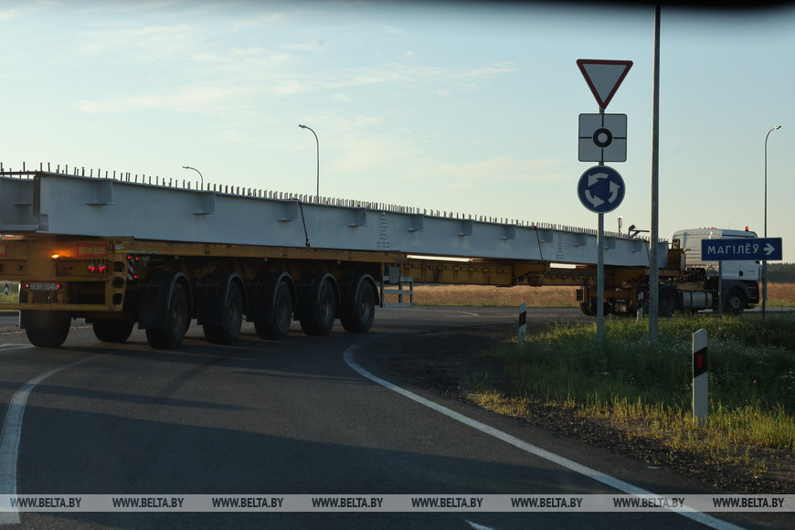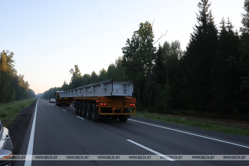 2 августа, Могилев /Корр. БЕЛТА/. Впервые в Беларуси в ООО "Протос" изготовлено и собрано 36-метровое металлическое пролетное строение. Сегодня утром в сопровождении ГАИ оно доставлено к месту установки, к путепроводу по проспекту Мира в Могилеве. Монтаж его позволит значительно сократить сроки ввода моста.-0-