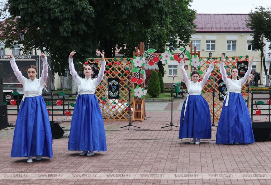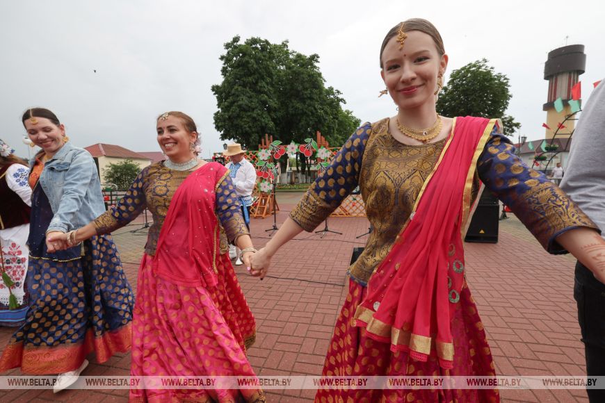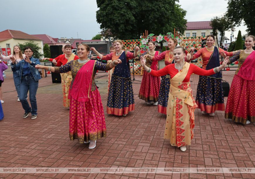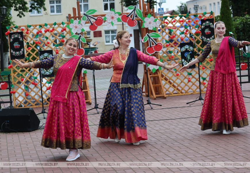 Художественный руководитель ансамбля индийского танца "Сапна" Елена Позднякова рассказала, что о фестивале узнала в центре национальных культур. В вишневую столицу она со своим коллективом приехала впервые. "Когда мы только въезжали в Глубокое, нам уже понравился этот город. Такой красивый, уютный, цветущий, теплый. Очень рады, что сюда приехали. Замечательный фестиваль. Мы сюда привезли народные индийские танцы, у которых есть главная особенность - в каждом движении рук, ног, головы, даже мимике лица заключен какой-то рассказ. Мы рады, что есть такие фестивали, где не просто можно показать частичку культуры определенной страны, а увидеть другие культуры, подружиться с коллективами из разных стран. Так замечательно, что на нашей белорусской земле мы можем вот так свободно, мирно, дружно и весело встречаться и показывать свои таланты", - поделилась Елена Позднкова.-0-