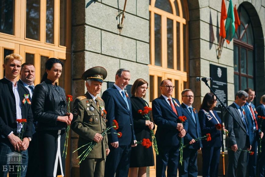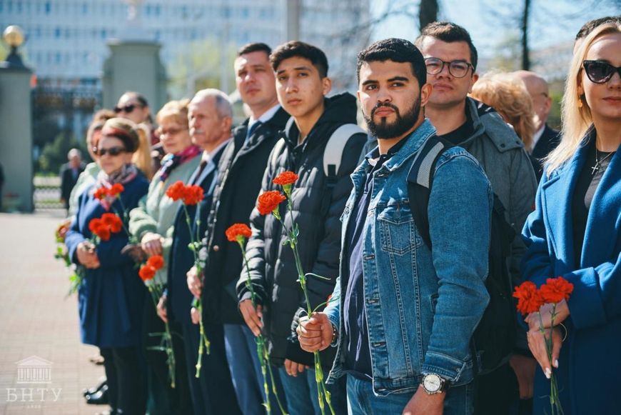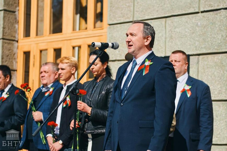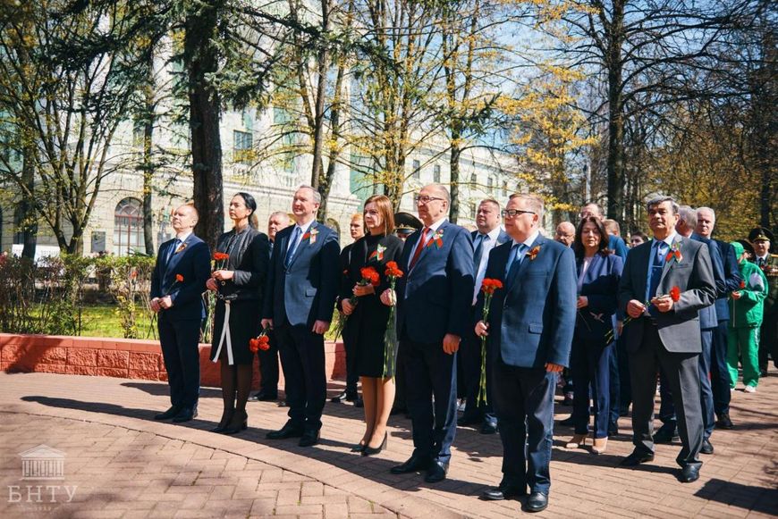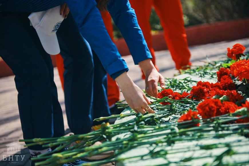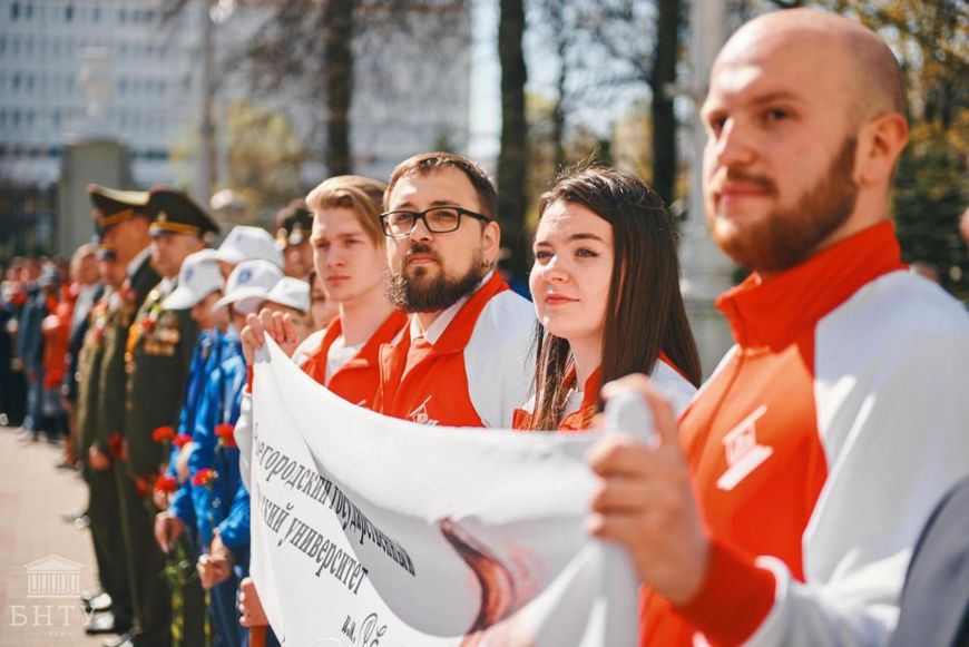 Мероприятие объединило в себе торжественный обмен вымпелами между участниками легкоатлетического студенческого пробега, концертную программу, подготовленную Управлением по делам культуры БНТУ и торжественное возложение цветов к стеле погибшим сотрудникам и студентам БПИ в годы Великой Отечественной войны.