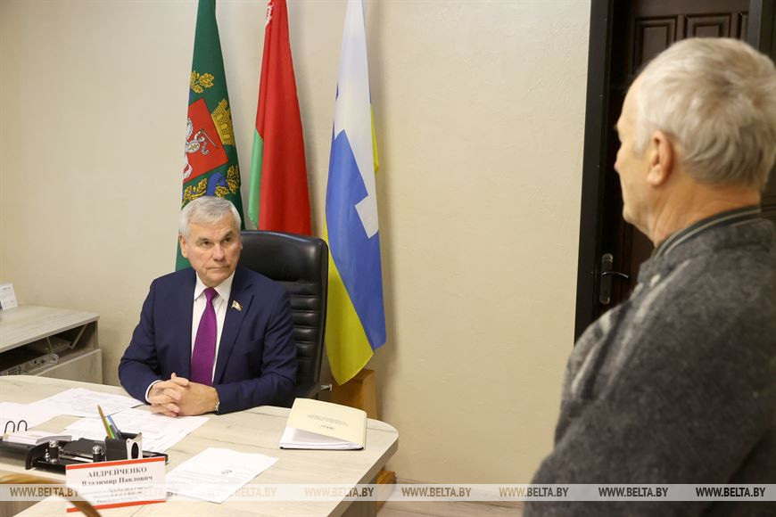 Священник из деревни Плиса Глубокского района обратился за содействием в модернизации существующей линии электропередачи для последующего создания системы отопления в храме. Этим вопросом по просьбе спикера займется руководство санатория с одноименным названием. Владелец строительного предприятия из Дрибина Могилевской области рассказал, что налоговые службы проверяют его бизнес уже больше года и попросил на это обратить внимание. Владимир Андрейченко пообещал обсудить вопрос и его решение с Министерством по налогам и сборам.