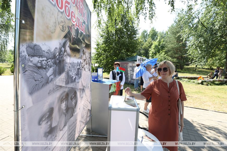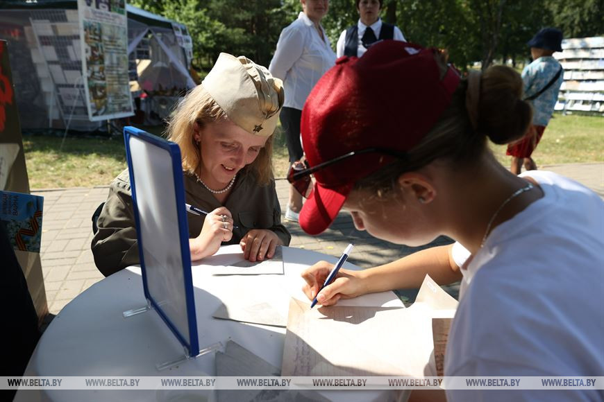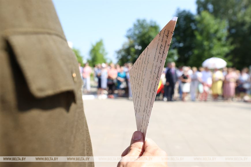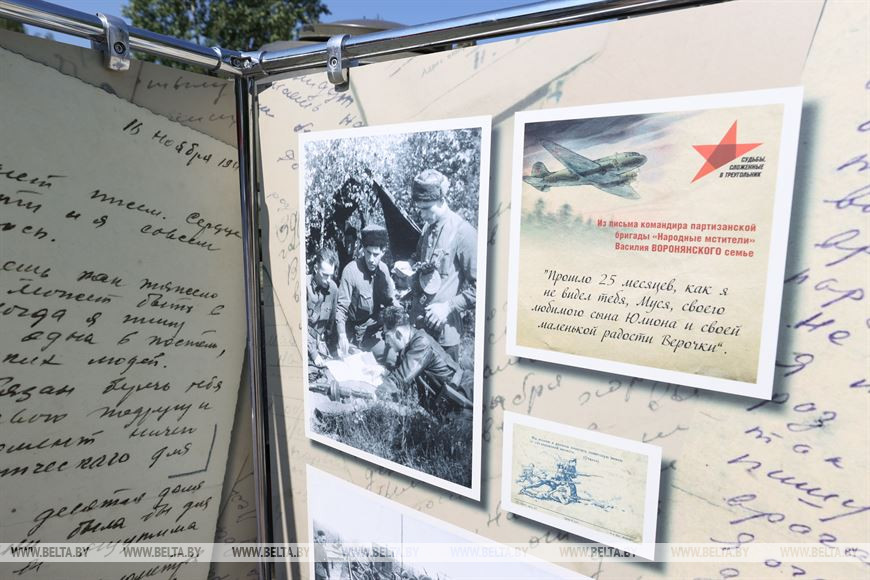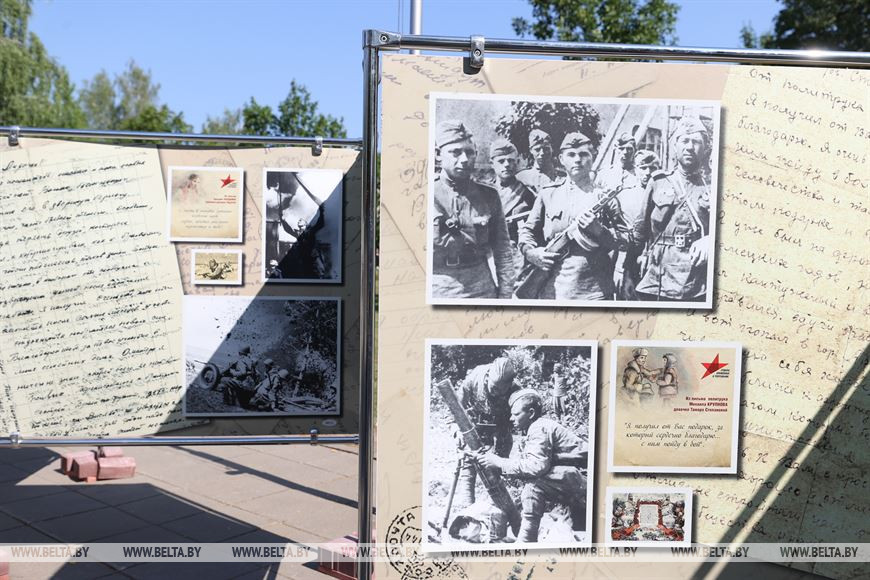 Благодаря совместному проекту Белорусского телеграфного агентства и Белорусского государственного музея истории Великой Отечественной войны "Судьбы, сложенные в треугольник" жители и гости города могут познакомиться с реальными историями фронтовиков, которые содержатся в их письмах. Экспозиция разместилась у мемориального комплекса "Аллея Героев" и будет работать в праздничные дни.