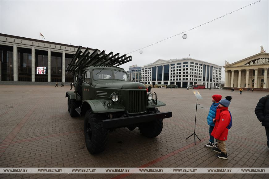 На площадке у Дворца Республики аншлаг: ребята фотографируются с военной техникой, военные повара с радушием угощают всех солдатской кашей. Не оставили равнодушными минчан и гостей столицы питомцы Кинологического центра Вооруженных Сил.