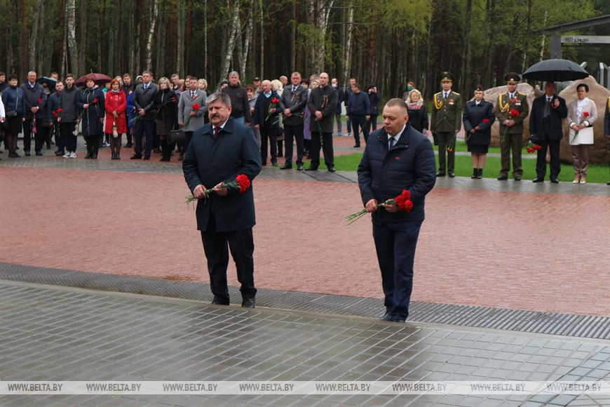 Геннадий Соловей акцентировал внимание на необходимости сохранить историческую память. "Мы не позволим никому изменить историю, написанную кровью советских солдат и трудом наших самоотверженных женщин. Наш народ отдал за свое освобождение самое дорогое - миллионы человеческих жизней. 40% мужчин в возрасте от 18 до 35 лет погибли. За время войны количество детей в БССР уменьшилось на треть. Беларусь потеряла каждого третьего жителя в борьбе за независимость. Хатынскую трагедию повторили 9 тыс. белорусских деревень, из них 1126 в Гомельской области. 260 концлагерей были созданы нацистами в стране. Среди них зона смерти Озаричи, где 50 тыс. человек оказались за колючей проволокой под открытым небом. Каждый третий из них не дожил до освобождения. Тех, кто пытается переписать историю Великой Отечественной войны, надо направить сюда, в Красный Берег, в Озаричи. У кого есть сердце - равнодушными не останутся", - подчеркнул губернатор. Он поздравил присутствующих с наступающим Днем Победы, пожелал хранить в сердце память о трагических годах военного лихолетья, твердо стоять на защите национальных интересов.