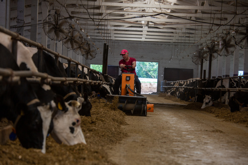 Оказывается, даже нарезка силоса или сенажа и их зольность влияют на надой. Кроме того, каждый час для обогащения кислородом, повышения влажности и рассыпчатости корм переворачивается самоходкой. Соблюдая все правила и придерживаясь строжайшей технологии, комплекс ежедневно выдает по 27 тонн молока.