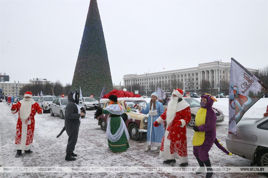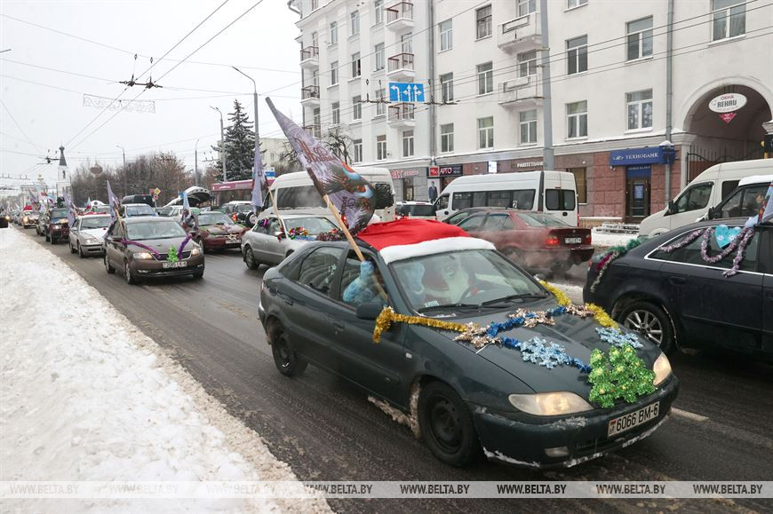 17 декабря, Могилев /Корр. БЕЛТА/. Яркий костюмированный новогодний автопарад "За рулем Дед Мороз" прошел в Могилеве. По центру города проехали более 70 украшенных автомобилей со сказочными персонажами и новогодними флагами, передает корреспондент БЕЛТА.