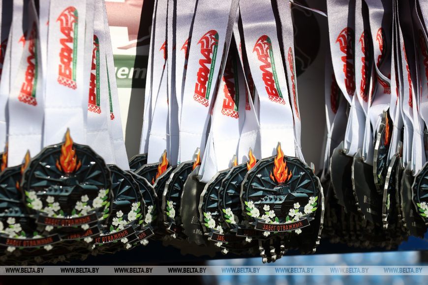 9 мая, Минск /Корр. БЕЛТА/. 9 мая в столичном парке Победы прошел "Забег отважных", приуроченный к празднованию Дня Победы. Забег включал преодоление разных по протяженности дистанций с препятствиями. В рамках семейного забега на старт вышли родители вместе с детьми.-0-