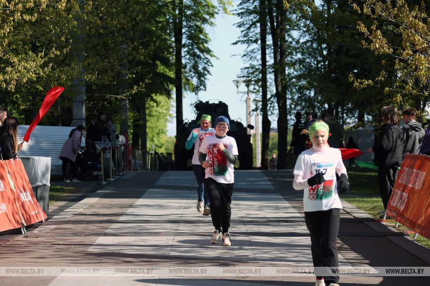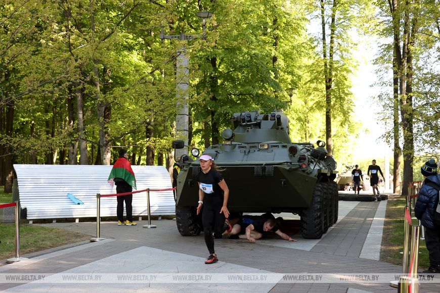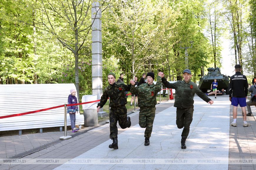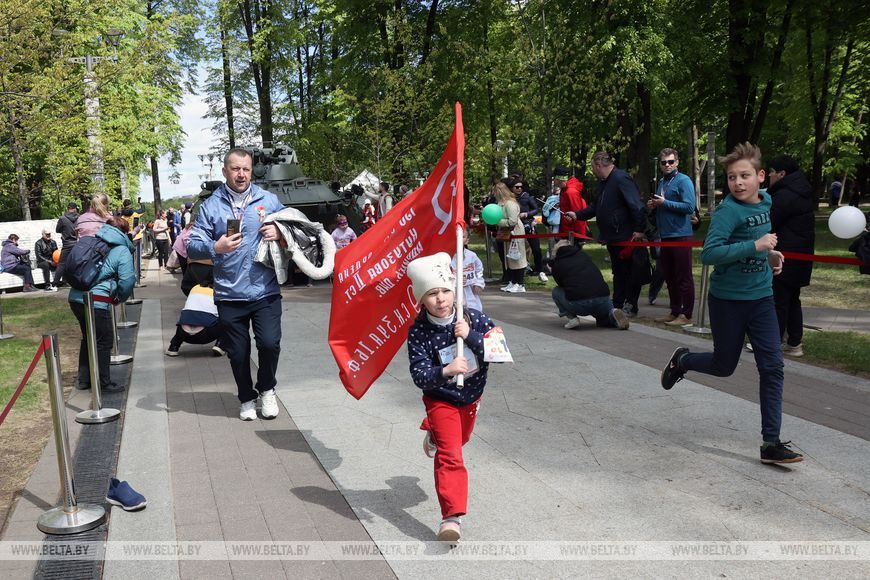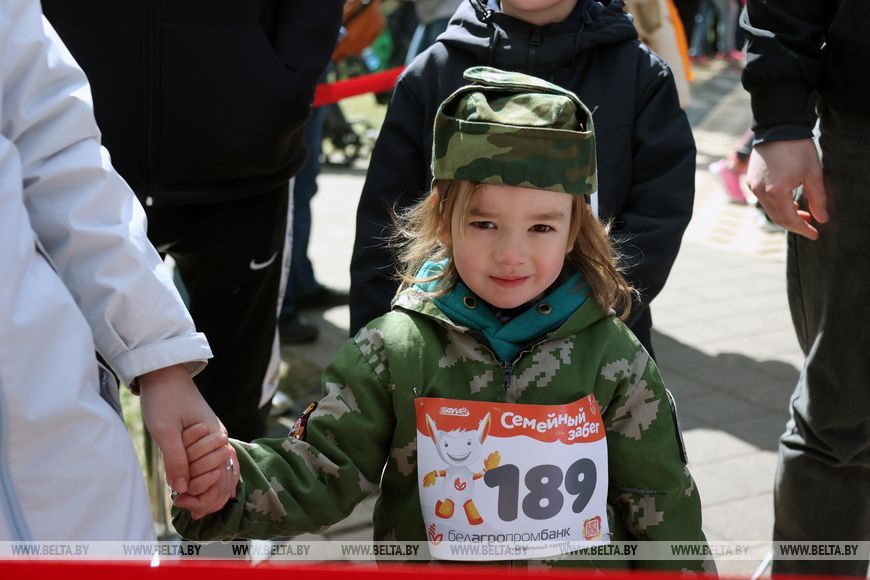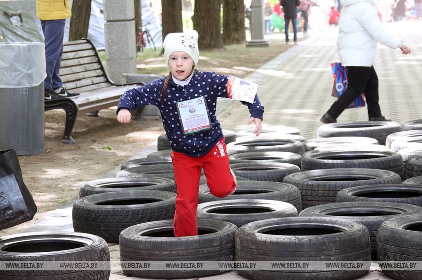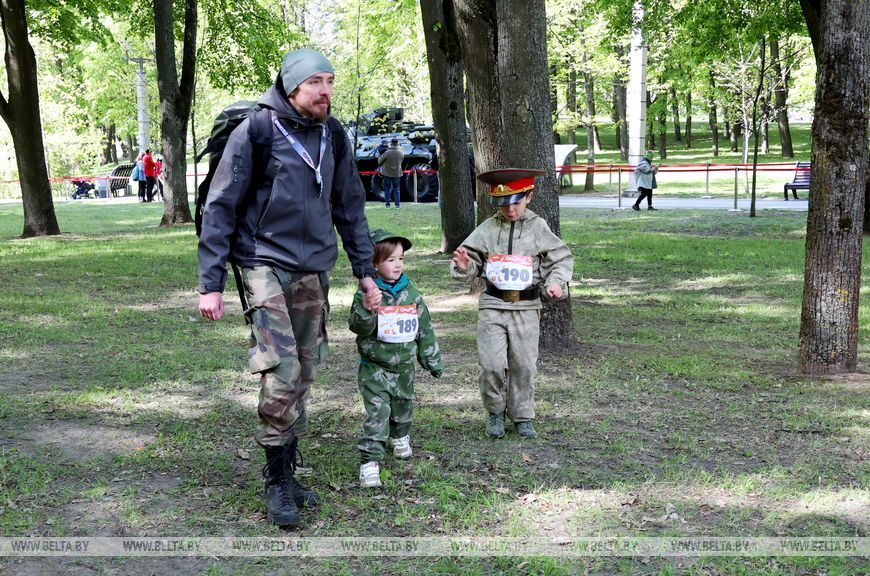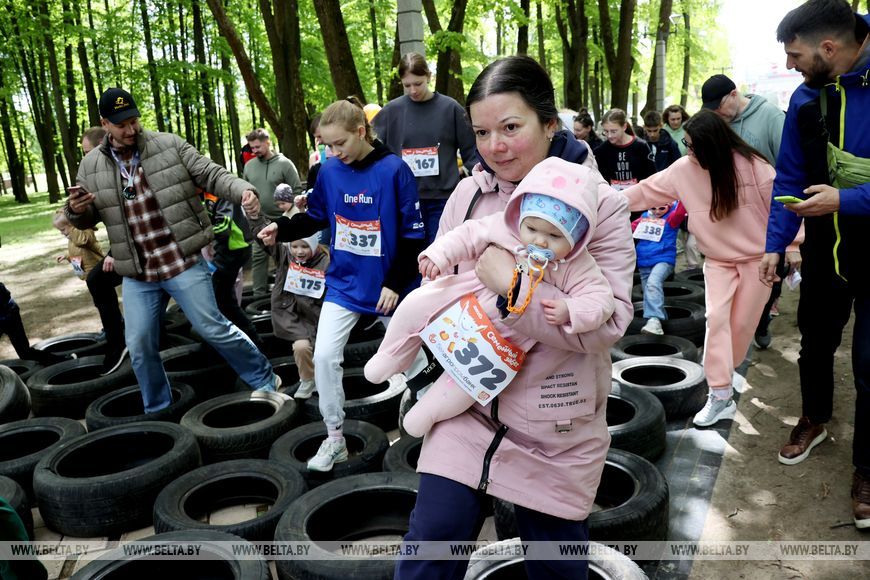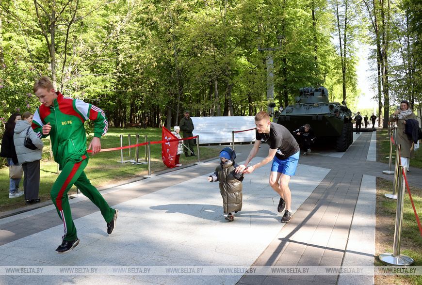 9 мая, Минск /Корр. БЕЛТА/. 9 мая в столичном парке Победы прошел "Забег отважных", приуроченный к празднованию Дня Победы. Забег включал преодоление разных по протяженности дистанций с препятствиями. В рамках семейного забега на старт вышли родители вместе с детьми.-0-