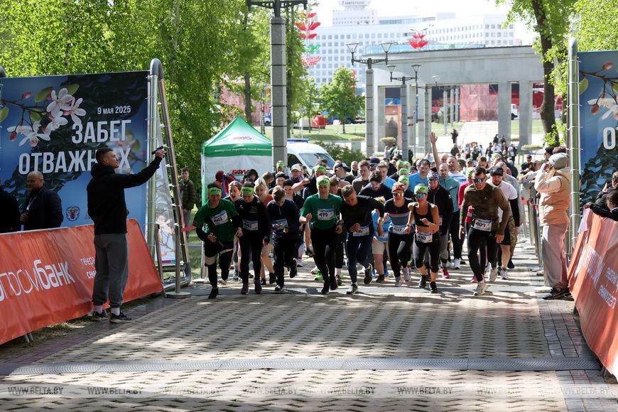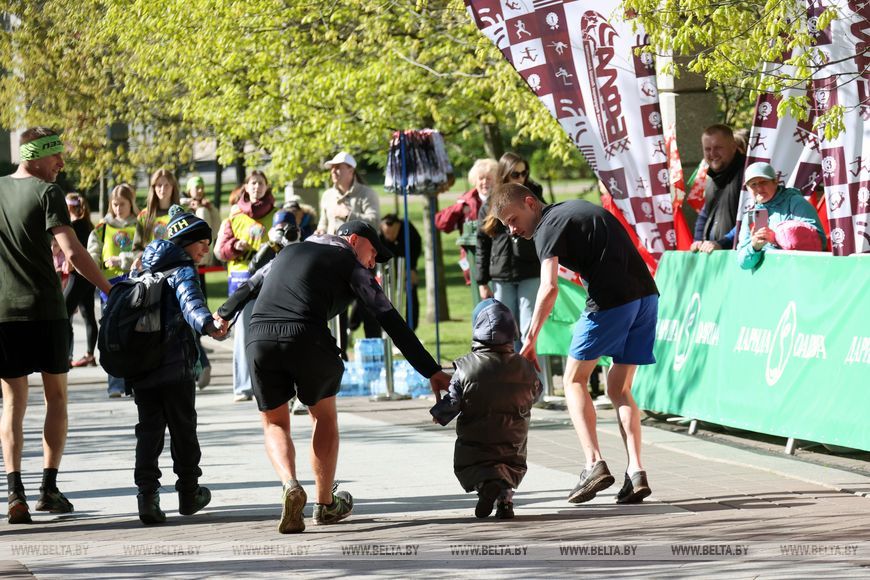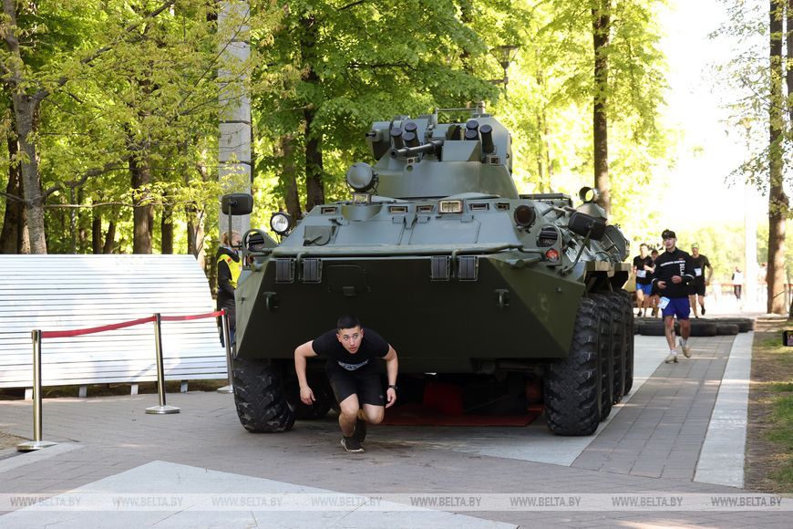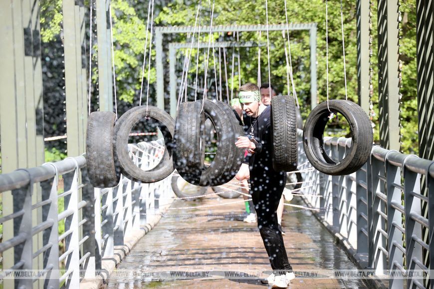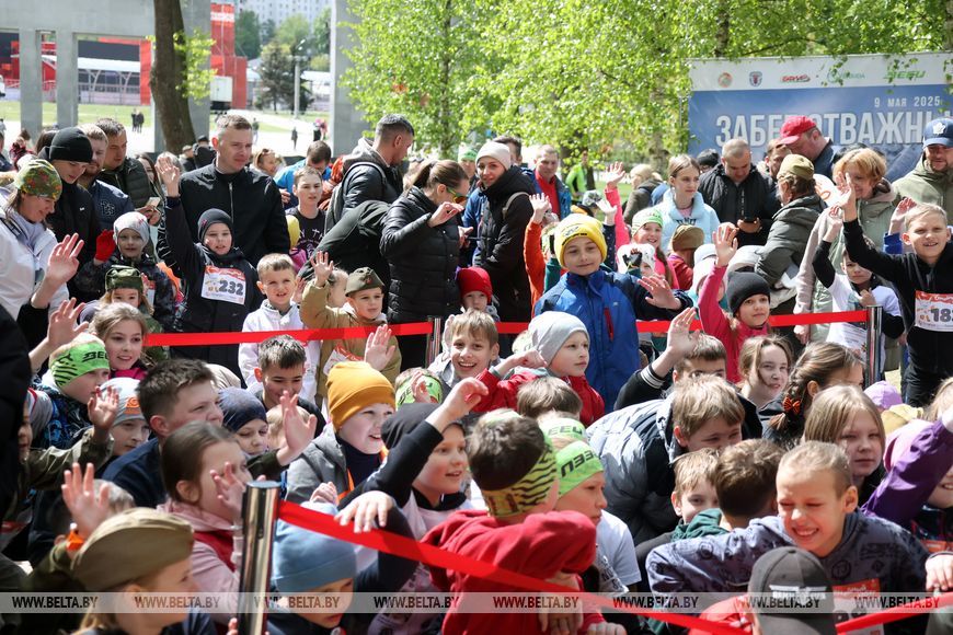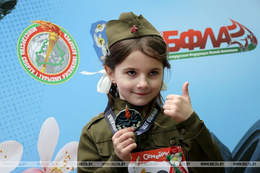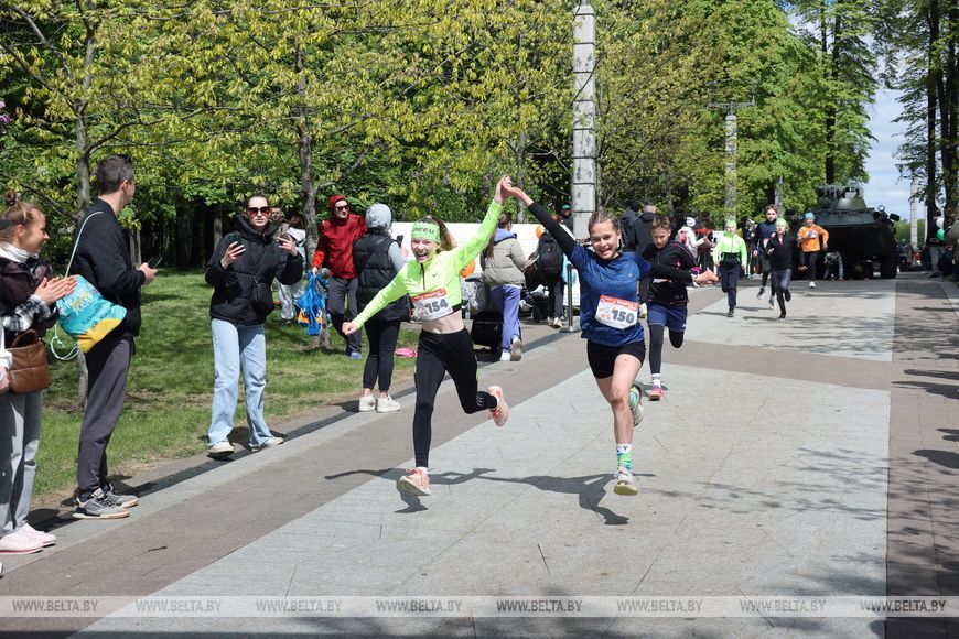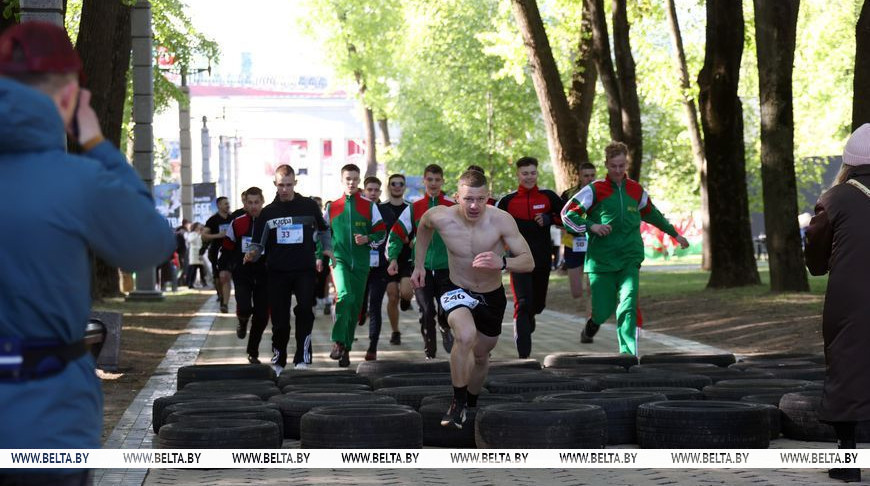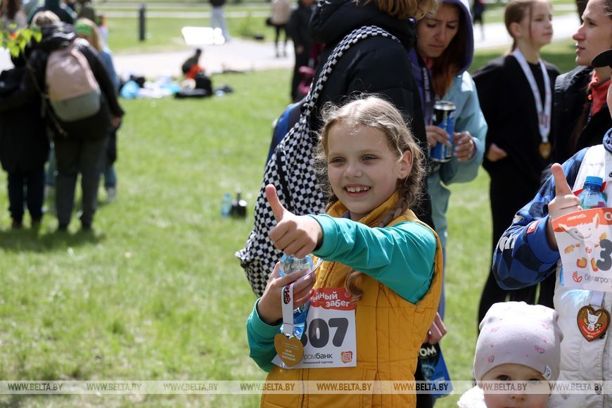 9 мая, Минск /Корр. БЕЛТА/. 9 мая в столичном парке Победы прошел "Забег отважных", приуроченный к празднованию Дня Победы. Забег включал преодоление разных по протяженности дистанций с препятствиями. В рамках семейного забега на старт вышли родители вместе с детьми.-0-