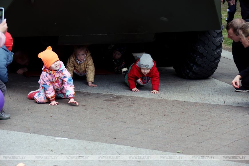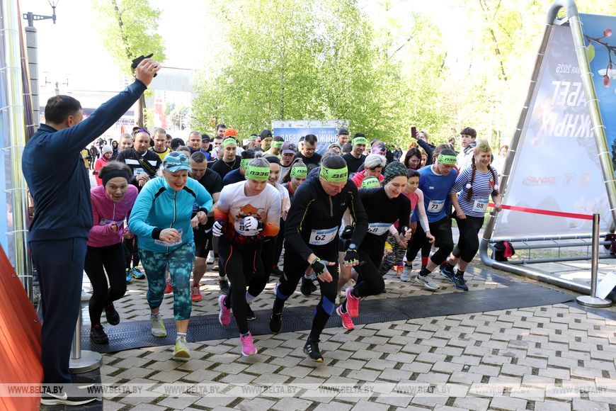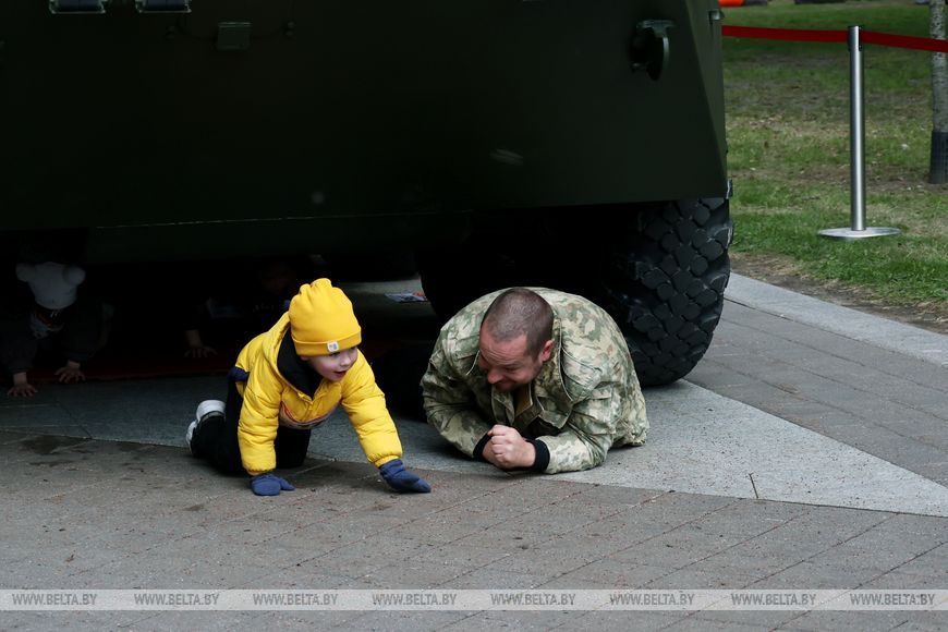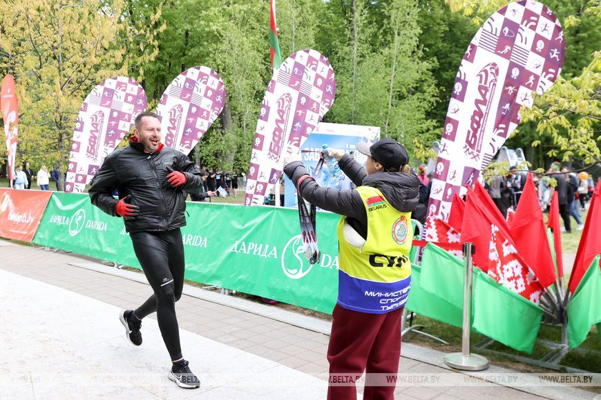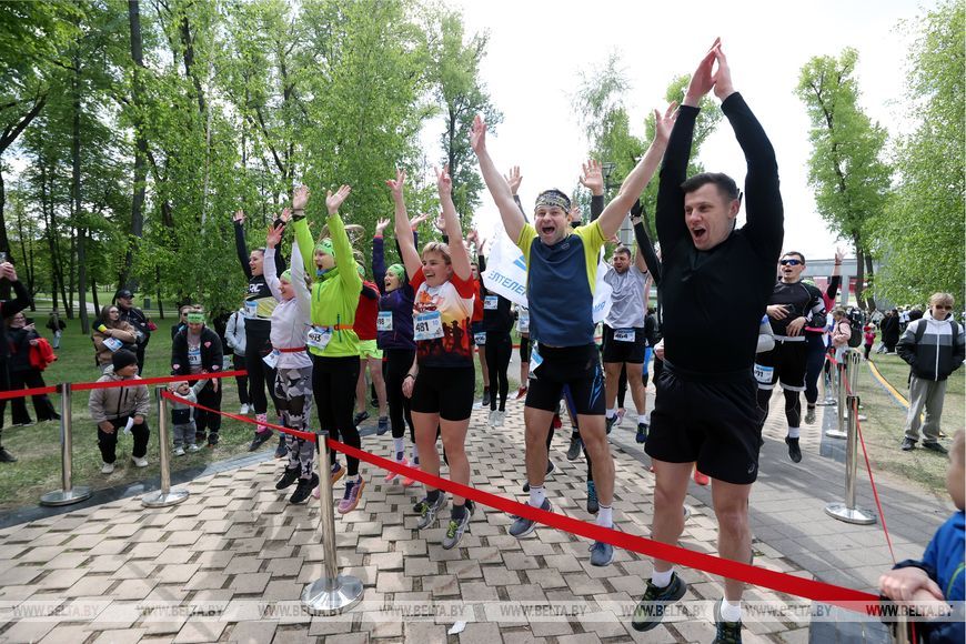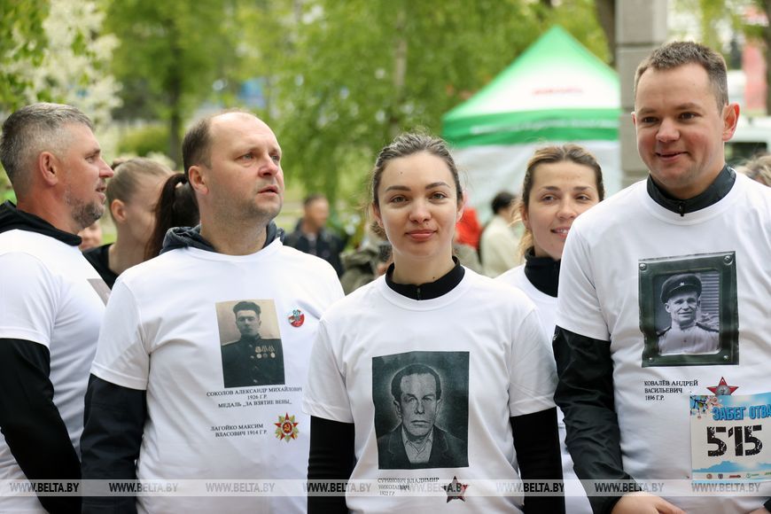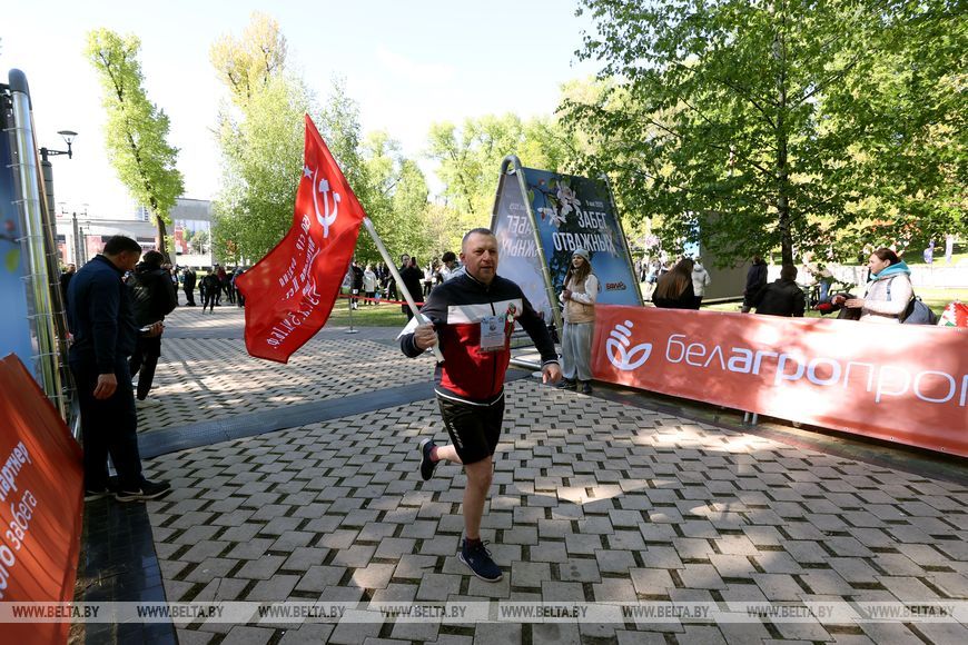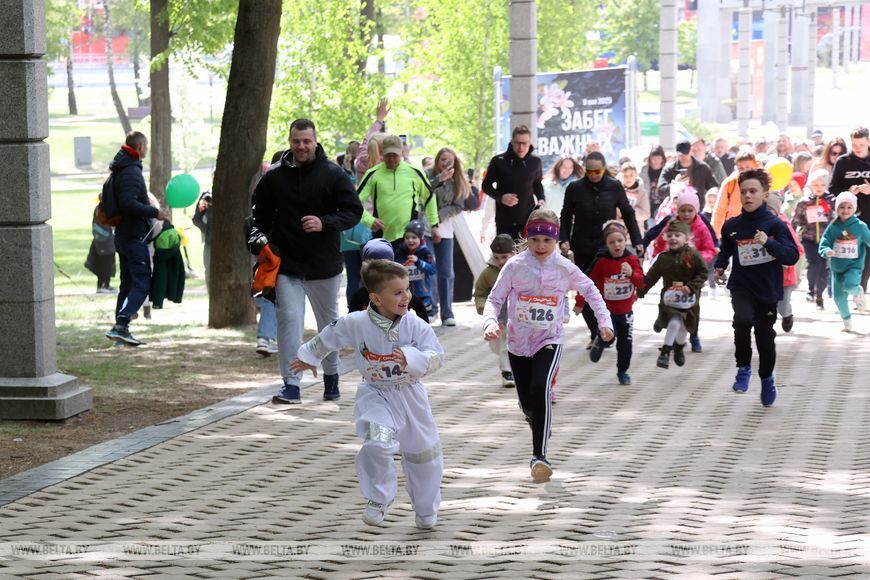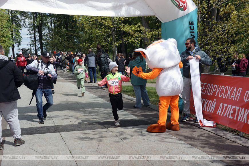 9 мая, Минск /Корр. БЕЛТА/. 9 мая в столичном парке Победы прошел "Забег отважных", приуроченный к празднованию Дня Победы. Забег включал преодоление разных по протяженности дистанций с препятствиями. В рамках семейного забега на старт вышли родители вместе с детьми.-0-