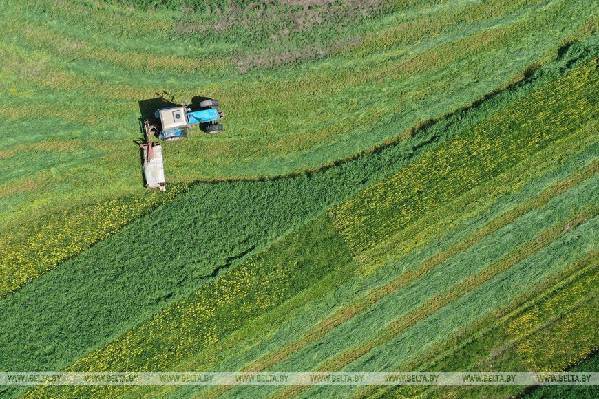 В "полосатом" поле трудится Алексей Куцанков. "Работаю давно, лет 17 уже в этом хозяйстве. Пора наша началась в феврале с подготовки техники. Работается хорошо, настроение хорошее, можно поработать и заработать. До укосов на культиваторе трудился, вносил минеральные удобрения. Работы хватает", - поделился аграрий. Говоря о прелести своего труда Алексей Куцанков отмечает: "Здесь спокойно, всегда на природе, да и важное дело делаем". К слову, с этого необычного поля в 90 га планируют заготовить 1,5 тыс. т сенажа.