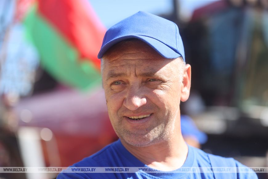 Начинает работу и Максим Колеснев, стаж которого в сельском хозяйстве около 10 лет. Вслед за женой приехал он в Гродненский район из Витебской области. Выбирал работу, говорит аграрий, по зову сердца, так и трудится на земле. "Техника нравилась всегда, особенно большая. Да и романтика своя есть в уборочной, вокруг красота, поэтому уборку особенно ждали, тем более что это и возможность заработать, а самое главное - собрать наш белорусский урожай", - делится мужчина, который, к слову, эту жатву начинает на новом комбайне отечественного производства. "В прошлом году комбайн купили, но не довелось поработать, а сейчас начнем вот. Идеальный аппарат", - добавил Максим Колеснев.