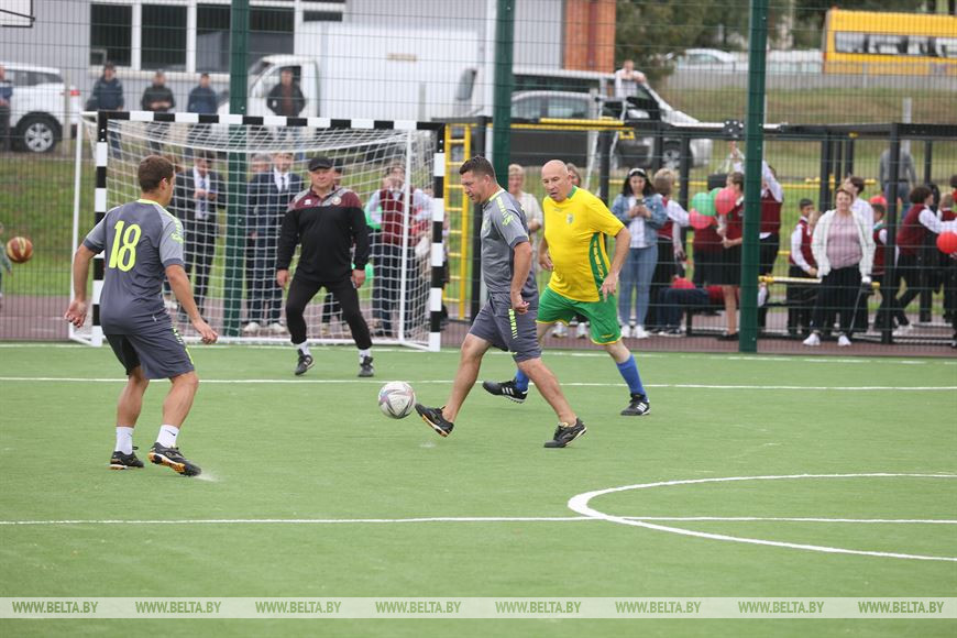 После торжественного открытия состоялся дружеский футбольный матч между футбольным клубом "Неман" и сборной командой выпускников школы и гостей мероприятия.