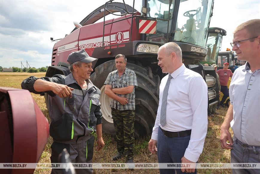 Как рассказал директор КСУП "Совхоз "Большое Можейково", после уборки озимого ячменя в хозяйстве приступят к уборке пшеницы и ярового ячменя. "После - рапс, убрать солому нужно - спрессовать, свезти, запаковать. Промежуток по времени маленький. Уборочная этого года сместилась по срокам. Мы когда-то уже 25 июня начинали убирать озимый ячмень. А в этом году сегодня только приступаем. Поэтому сроки сжаты, как на уборку, так и на посевную осеннюю", - сказал Геннадий Коледа.