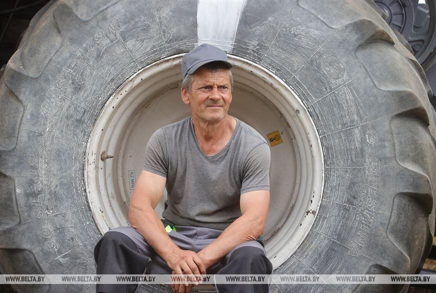 В составе одного из шести экипажей, который вышел в поле, Сергей Кузнецов и его молодой помощник Алексей Ошмяна. "Моя мечта с детства - работать на комбайне. Всегда ездил на велосипеде по полям и смотрел, как они работают поле. Я отучился в Лидском колледже на специальности "техник-механик". Сначала работал водителем в этом хозяйстве, потом слесарем, а на лето решил поработать на комбайне и так исполнить свою мечту. Готовились к жатве мы основательно, перебрали весь комбайн, поэтому уверен, что все пройдет хорошо", - говорит Алексей Ошмяна.