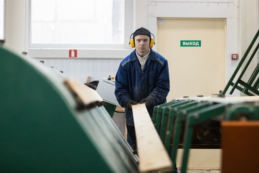 Процесс лесопиления полностью автоматизирован, станочникам остается только нажимать на кнопки, задавая необходимые размеры, и принимать готовую продукцию. К слову, с открытием нового производственного участка увеличился коллектив лесхоза. На работу в Лесино приняли почти 20 человек.