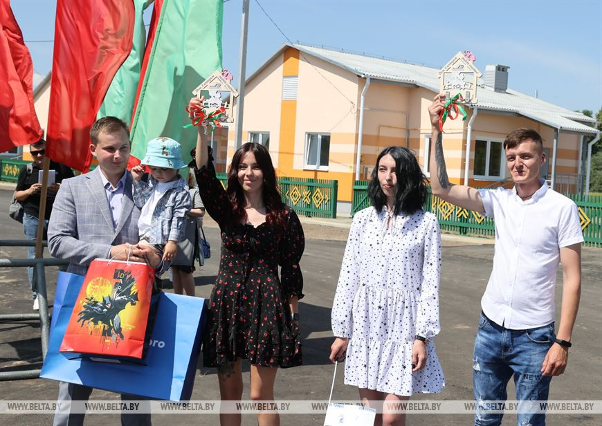 Для всего агрогородка сегодня большой праздник, ведь появился новый жилой квартал, благоустроены улицы. Теплые слова звучали и от соседей, которые предложили новоселам дружить семьями и приходить друг к другу на чай.