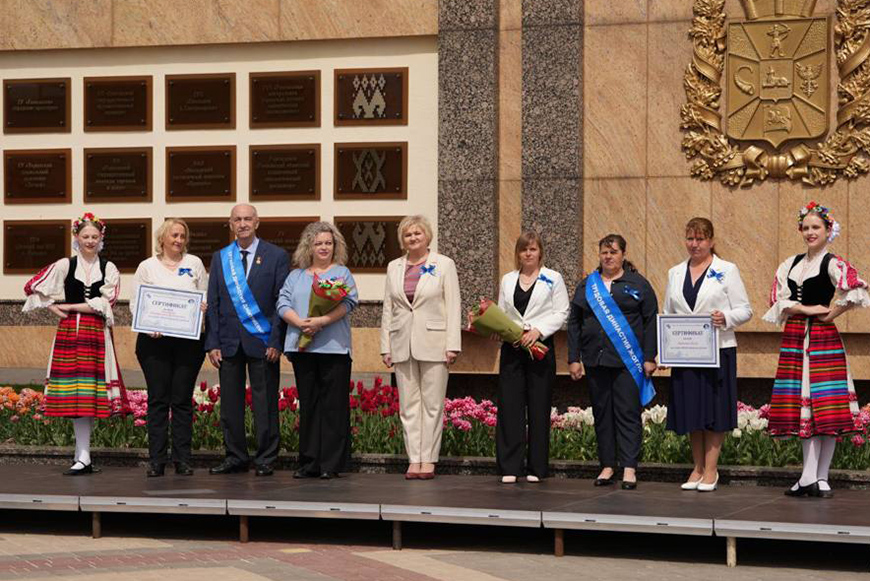 Лучшим примером укрепления корпоративного духа и высокой социальной ответственности она назвала сохранение и возникновение новых трудовых династий. "Они - золотой фонд наших предприятий и организаций. А их прошлое, настоящее и будущее неразрывно связаны с историей региона", - подчеркнула председатель Гомельского областного объединения профсоюзов. По ее словам, в трудовых коллективах только областного центра выросло более 100 трудовых династий, совместный стаж каждой из которых превышает 100, а некоторых - 200 и даже 400 лет. "Их личный вклад в социально-экономическое развитие региона, в укрепление благополучия предприятий никогда не остается без внимания профсоюзов", - добавила Елена Кличковская.На сцену за заслуженными наградами поднялись прекрасные представительницы трудовой династии из ОАО "Путь Ильича" Лельчицкого района. Семья Жогло - пример любви к своей земле, малой родине, сельскому труду. Уже четыре поколения династии с общим стажем 303 года остаются преданными рабочим профессиям сельскохозяйственного предприятия. Родоначальники династии - Григорий Никифорович и Елена Степановна. Второе поколение - их дети: сын Василий с женой Дарьей и дочь Ольга. В семье сына воспитали шестерых детей, пять из которых продолжили дело родителей, бабушки и дедушки и остались работать в сельхозпредприятии. В семье дочери Ольги продолжила семейное дело и ее дочь. Четвертое поколение семьи Жогло - правнук и правнучки родоначальников, которые также верны сельским рабочим профессиям.