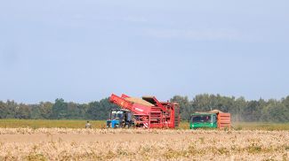 На полях Витебского района идет уборка картофеля. В крестьянском (фермерском) хозяйстве "Вармас" картофель занимает 255 га. Уборка идет в трудных климатических условиях, многие поля залиты водой.