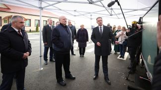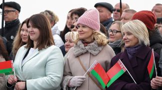 Глава государства в торжественной обстановке перерезал символическую красную ленточку. На церемонию были приглашены представители трудовых коллективов дорожных организаций, участвовавших в строительстве моста, жители Мозырского района.