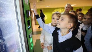 В школах могут появиться автоматы со снеками и напитками. Автомат тестируют в минской СШ №52