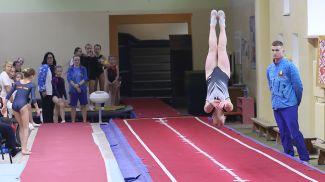 Почти 100 атлетов из Беларуси и России борются за победу в прыжках на акробатической дорожке в Гомеле