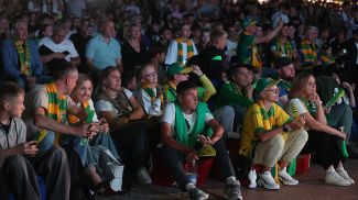 В центре Гродно тысячи горожан и гостей города вместе смотрят второй матч плей-офф квалификации Лиги конференций УЕФА, в котором "Неман" встречается с испанским "Райо Вальекано".