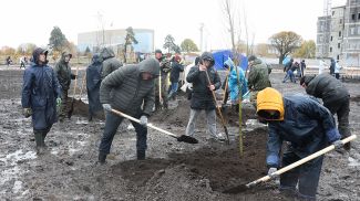 Липы, тополя, дубы высадили на территории парка Народного единства в Минске