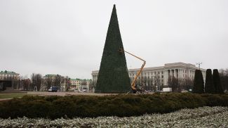Главный символ Нового года устанавливают работники городского дорожно-мостового предприятия на площади Ленина напротив здания облисполкома. Сначала собирают металлический каркас, на котором крепят искусственные зеленые лапки. По планам, монтаж конструкции ...