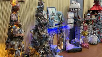 Выставка размещена в Могилевском областном центре творчества и буквально захватывает с порога. Здесь нет двух одинаковых работ - каждая елка рассказывает свою историю, решает свою техническую задачу и несет в себе новогоднее настроение.
