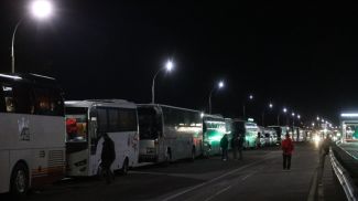 Автобусы начинают скапливаться у пункта пропуска "Брест" за три часа до открытия Польшей границы