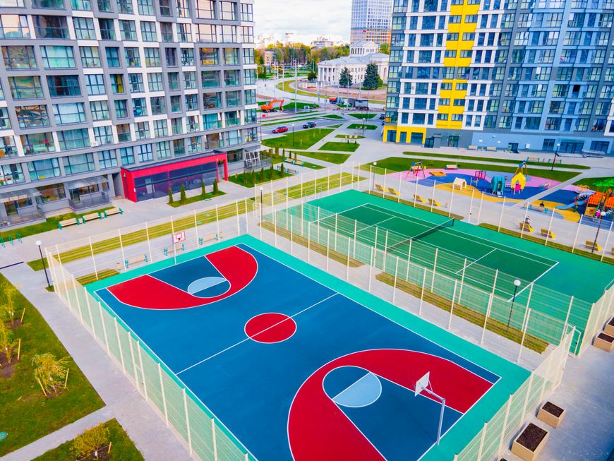 Обустроены теннисные корты и стадионы для игры в баскетбол, а также территории воркаута для поддержания хорошей физической формы.