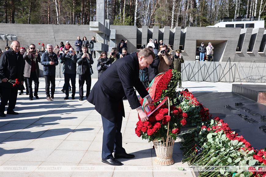 "Находясь здесь сегодня, в эту трагическую памятную дату, осознавая всю боль и страдания, которые выпали нашему народу, совершенно четко понимаешь, что миролюбие очевидно прошито у каждого белоруса на генном уровне. Именно во многом благодаря этому в нынешнее сложное время геополитических трансформаций, время конфронтации, фактически военного противостояния нам удается сохранять терпение, спокойствие, выдержку, понимание ситуации и удерживаться от различного рода провокаций, проводя совершенно четкую линию на диалог, мир, созидание и развитие", - сказал министр.-0-