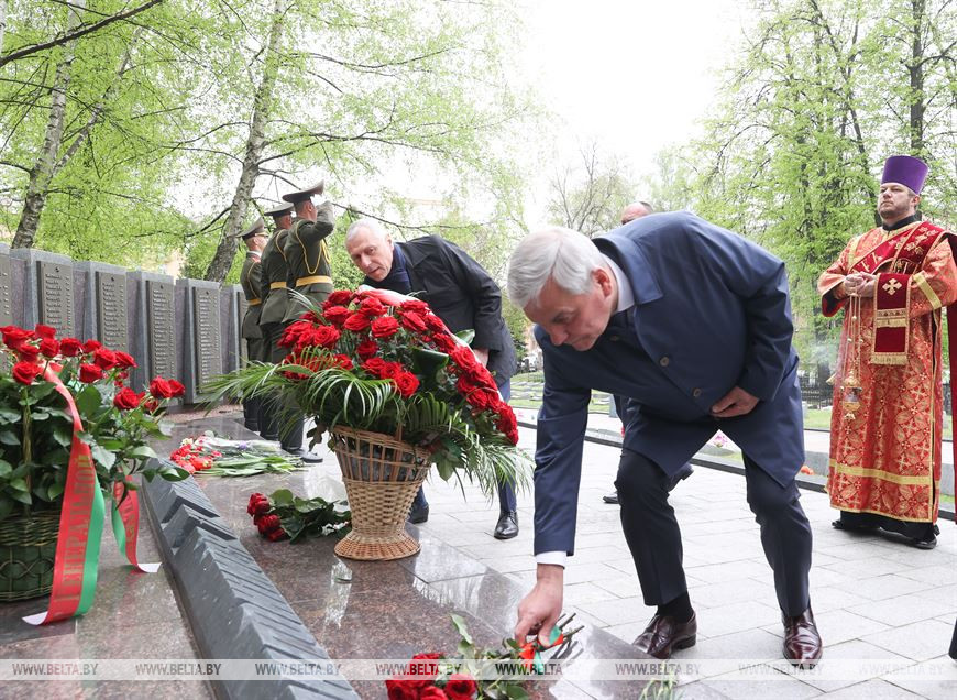 4 мая, Минск /Корр. БЕЛТА/. Сегодня председатель Палаты представителей Владимир Андрейченко и депутаты Палаты представителей от г. Минска в рамках республиканской акции "Беларусь помнит. Помним каждого" приняли участие в церемонии возложения цветов у мемориального комплекса на кладбище "Военное", передает корреспондент БЕЛТА.