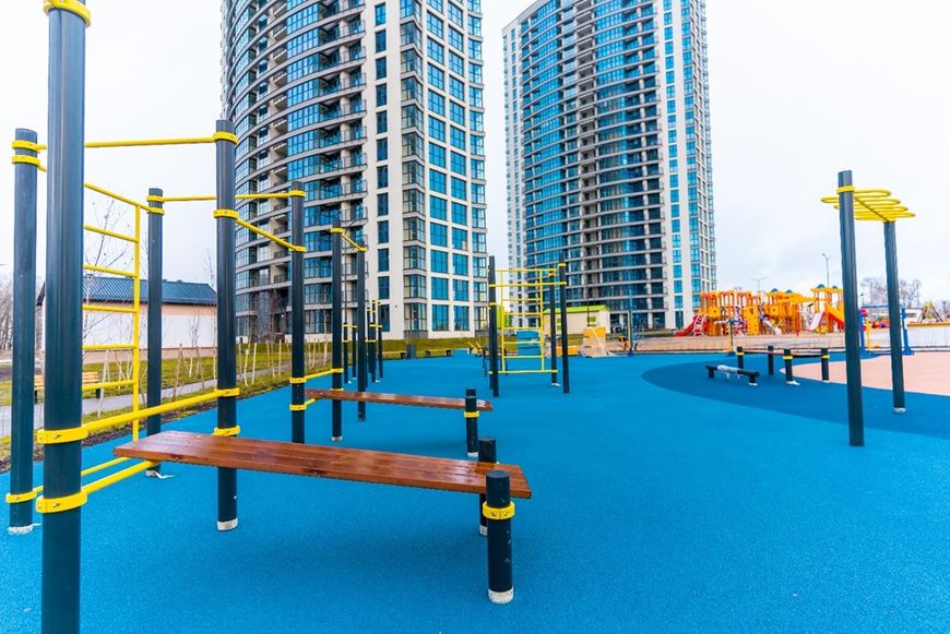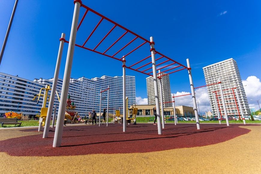 На территории квартала не будет транзитного движения автомобилей. Здесь запроектированы безопасные и яркие городки для игр детей. Для взрослых и подростков современные площадки для воркаута. Будет парк с беговыми и велосипедными дорожками.