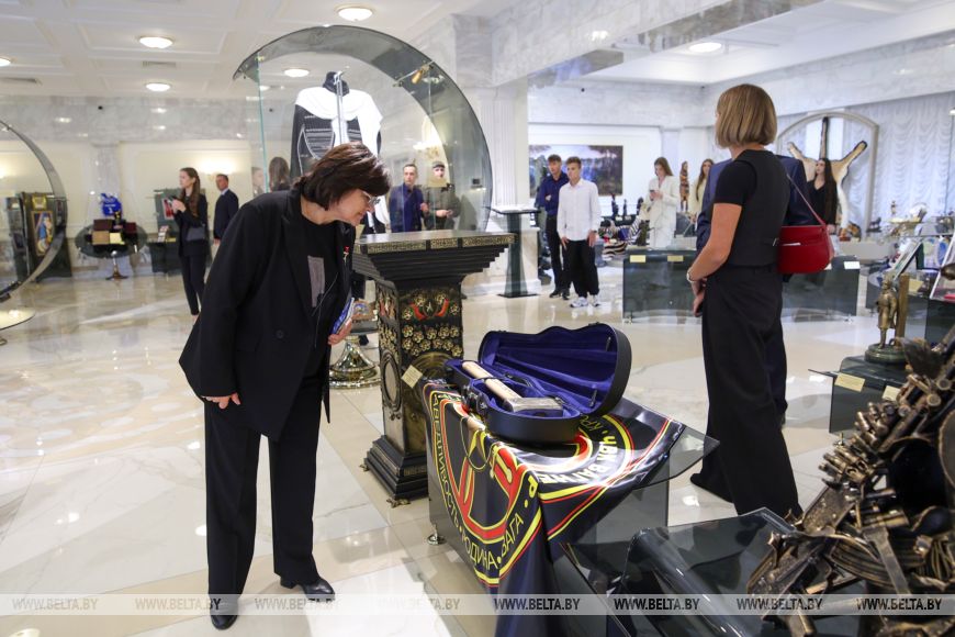 Финальной точкой экскурсии стал Музей подарков. Здесь хранятся предметы, сувениры, произведения искусства, которые были переданы главе государства зарубежными лидерами, политическими деятелями, делегациями, дипломатами, всемирно известными персонами. Есть здесь подарки от соотечественников, трудовых коллективов страны. Необычные экспонаты и их история надолго приковали внимание экскурсантов. А наиболее приглянувшиеся подарки гости, конечно же, запечатлели на память.-0-