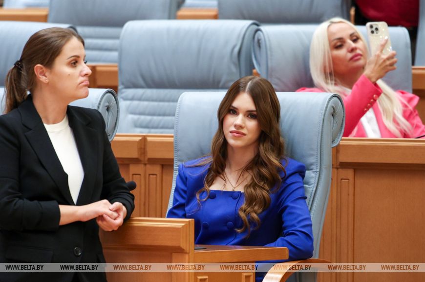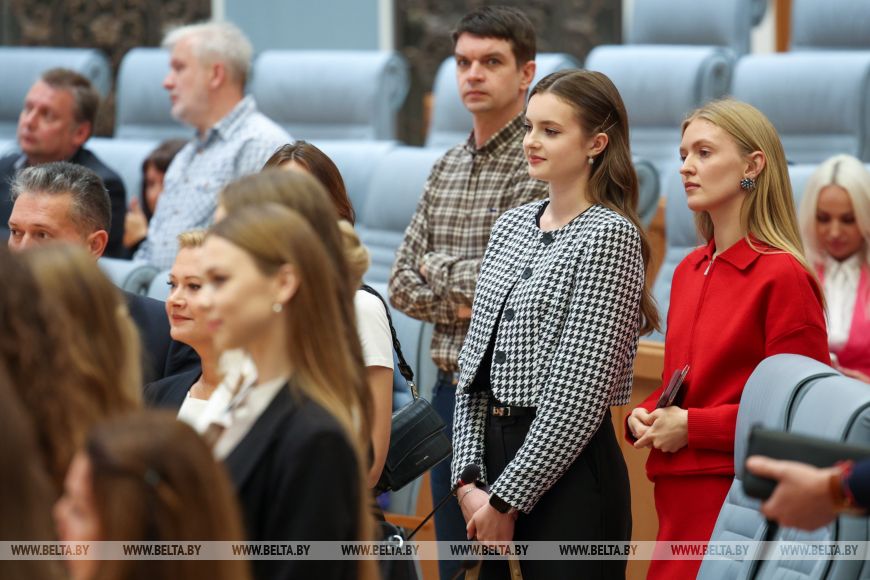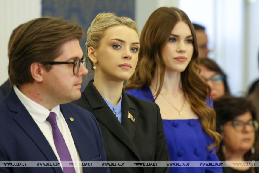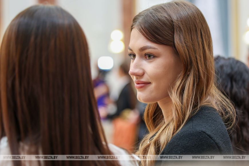 Конечно же, с экскурсией во Дворец Независимости пришла и главная красавица страны - победительница "Мисс Беларусь - 2025" Алена Кучерук. Девушка осталась под большим впечатлением от залов дворца. Алена отметила для себя, что все это сделано руками белорусов. "Здесь просто очень приятно находится. Я очень рада, что нам представилась возможность побывать в этом прекрасном месте", - рассказала Алена.