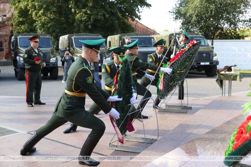 Участники мероприятия возложили цветы к скульптурной композиции "Героям границы, женщинам и детям, мужеством своим в бессмертие шагнувшим" - знаковому для каждого белорусского пограничника месту. Символична была и дата проведения церемонии передачи техники - сразу после Дня народного единства, что подчеркнуло сплоченность нашего общества.-0-
