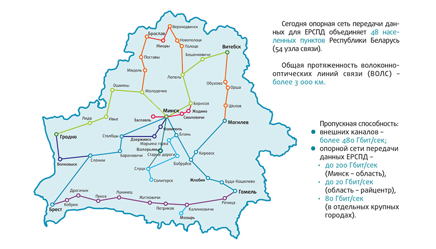 Сегодня Единая республиканская сеть передачи данных покрывает всю страну и ежемесячно пропускает значительную часть голосового трафика и данных. В ЕРСПД включены сети передачи данных крупнейших интернет-провайдеров, присоединены сети органов государственного управления Беларуси.