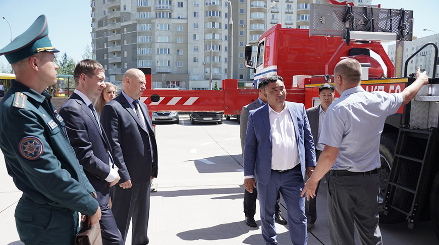 Делегация Монголии сегодня также посетила Республиканский центр управления и реагирования на чрезвычайные ситуации и пожарный аварийно-спасательный отряд Минского городского управления МЧС.-0-